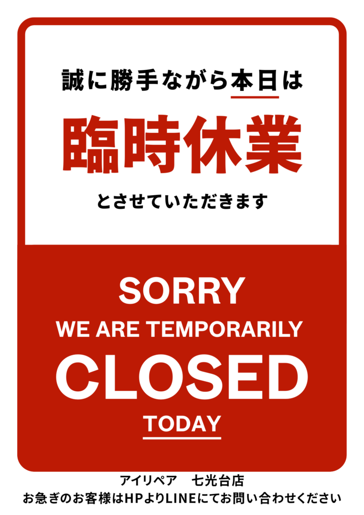 【4月21日】本日店休日【アイリペア 七光台店】